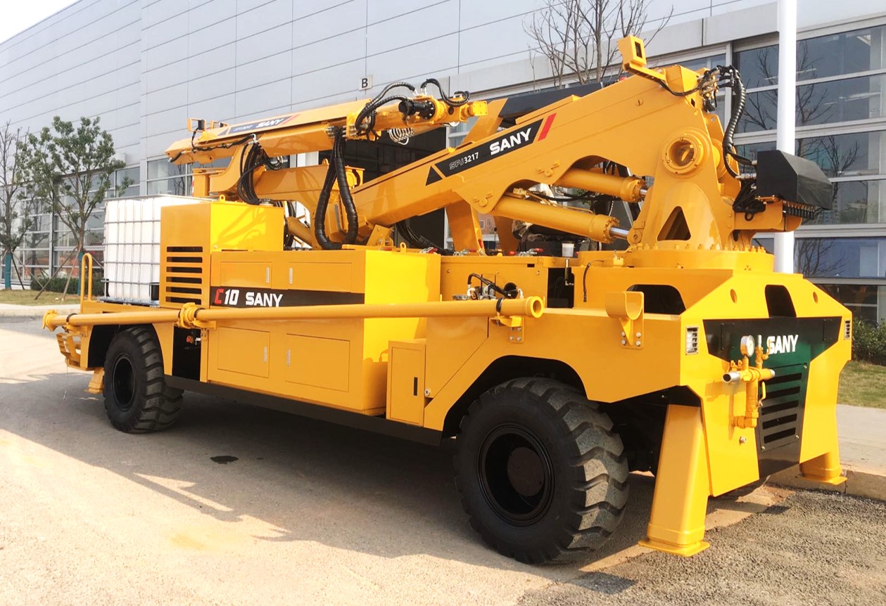 范围广:臂架9个自由度,最大喷射高度17.5m,最大喷射宽度30m,240°球面喷射无死角;