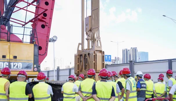 下午3点,精彩接续。好体育投注网站组织众人乘车前往设备施工地,见证并观摩了双轮铣槽机SDC120真实的使用场景,并随后由好体育投注网站智造研究院于卓伟院长详细讲解了产品特点与优势,由来自深圳盛隆建设有限公司的机手刘建合,从产品的智能化、舒适性、施工体验,以及保养等多方面讲述自己的操作感受。