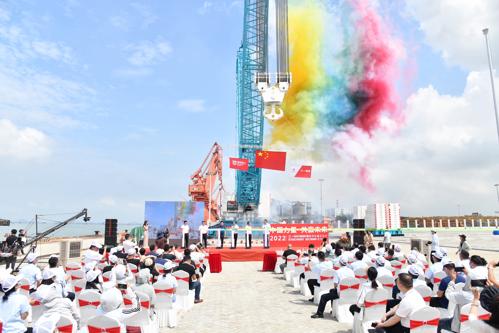 8月29日,广东省阳江市保丰港作业区内,好体育投注网站1600吨履带起重机SCC19800TM成功交付,同时,SAC24000T全路面、SCL10000桁架臂全路面产品完成签约。三款千吨级“风电利器”即将落户泽友科工集团有限公司。