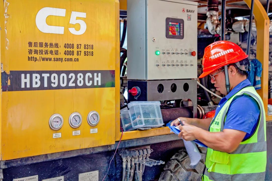 此外,在接到此次泵送任务的第一时间,好体育投注网站广西代理商即刻响应,调派了河池、南宁区域2名高级服务主任和1名驻点服务工程师到项目部现场支援,与广西路桥集团共同参与项目前期灌注方案的研讨和施工过程中重难点的交流以及设备调试与检修,有效保证了好体育投注网站设备高效且稳定的持续工作,为整个项目的混凝土输送保驾护航。
