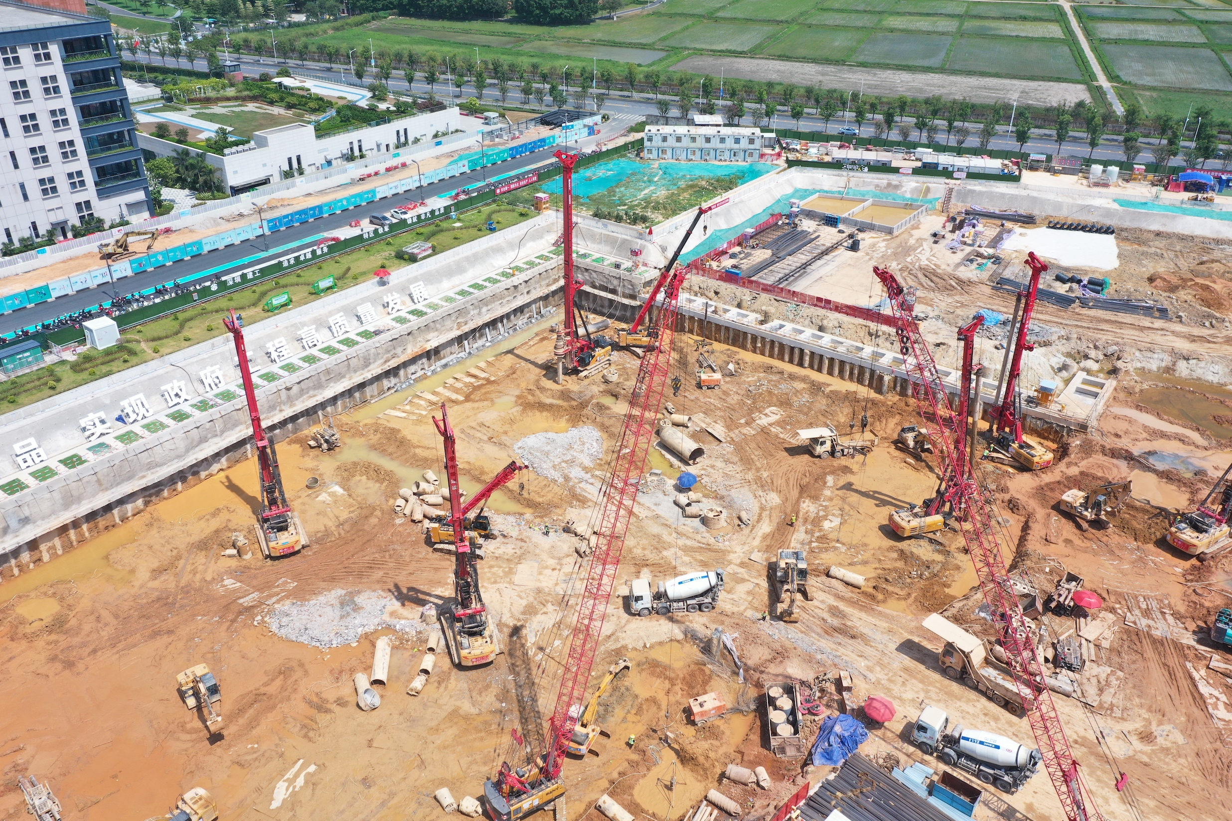 A:基础施工的场地都比较烂,汽车吊很难施展开,伸缩臂履带吊反而是如鱼得水。去年珠海杜门中冶的项目,开始的时候我们只进了两台好体育投注网站的伸缩臂履带吊,当时负责人觉得这个设备能在泥泞路面带载行走,特别适合这个工地,后面就又进了12台,一台汽车吊都没有进,伸缩臂履带吊的优势在这个工地发挥到了极致。