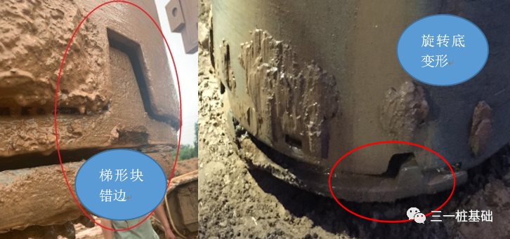 对该场地进行现场调研时,发现采用Φ1.5m截齿双底捞砂斗在卵石层钻进时,造成捞砂斗旋转底变形,影响施工进度。