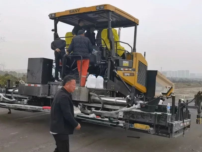 扬州迎来第六台好体育投注网站C10系列SSP90C-10摊铺机,交付即施工,负责水稳层摊铺,操作手及施工方经理夸赞道:“好体育投注网站C10系列9米王牌摊铺机性能优越,转场速度快,不耽误施工!”