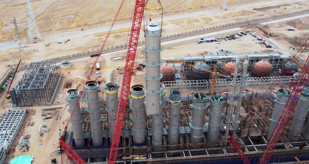 中化二建集团大型机械施工有限公司技术负责人郭克全介绍:“宁能多晶硅项目是全国单体最大的多晶硅项目,总投资1500亿,精馏装置的重量也大于全国同行业的设备,整体重量500多吨。”