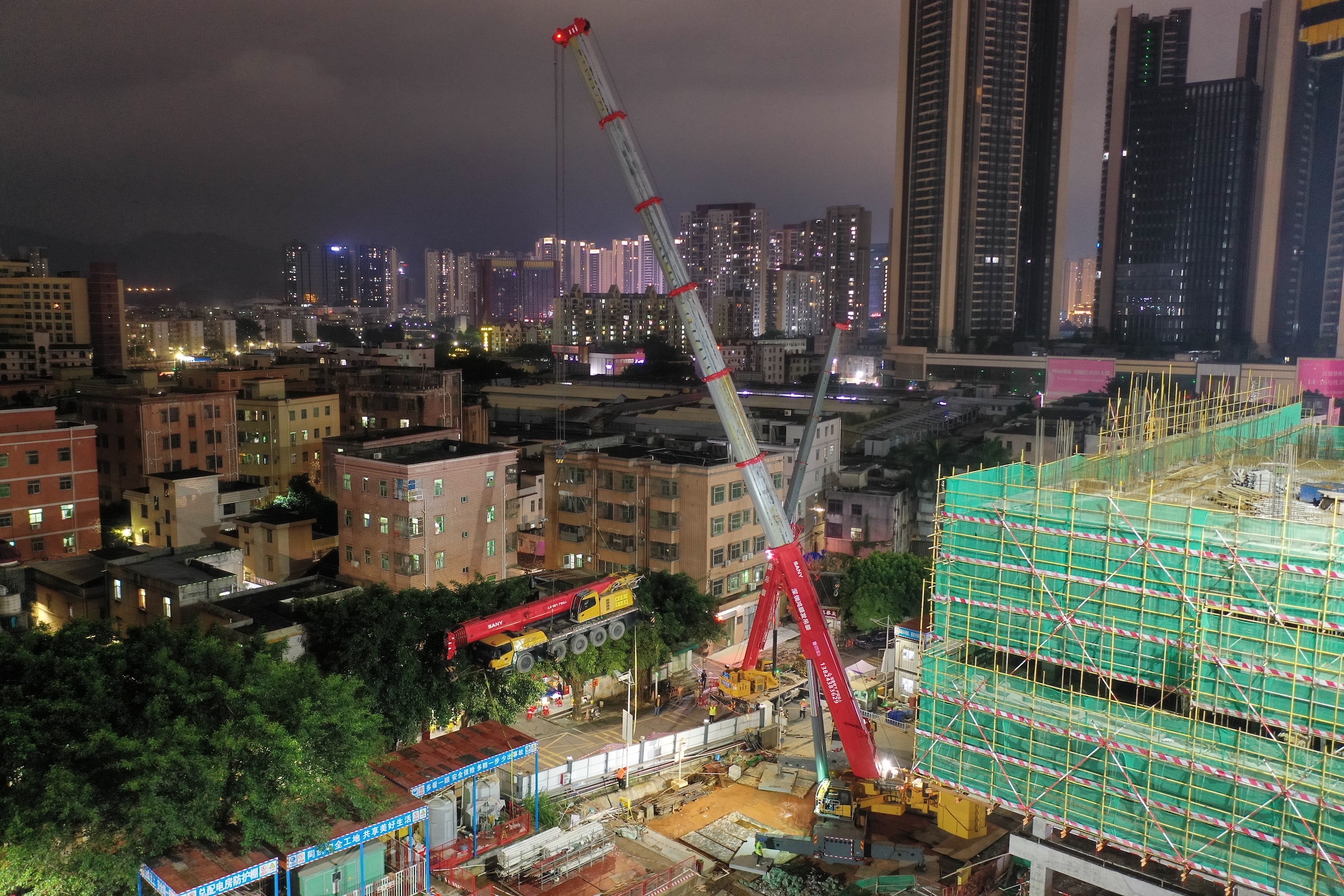 为了保证万无一失,深圳市鸿顺发装卸搬运服务部出动了SAC7500C7-8。总经理梁浩铭介绍:“这个活也只有这台750吨能干,它车身尺寸较小,带有配重变位,适合市政道路狭小空间作业。又是深圳地区吨位最大的汽车吊,起重能力有保证。不管是出于安全还是出于效率,它都是最优选。”
