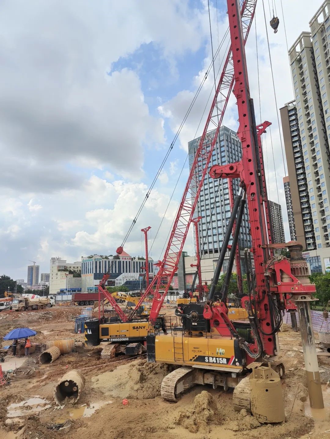 现场负责人介绍说,该项目工期紧张,旋挖钻机做为项目施工的”先行兵“,直接影响工程进度,在保证施工质量的前提下,效率尤为重要,对所有设备都有较高的要求,因此选择了好体育投注网站品牌设备。项目现场好体育投注网站旋挖钻机设备包括4台SR405H、4台SR415、3台SR445和2台SR485。