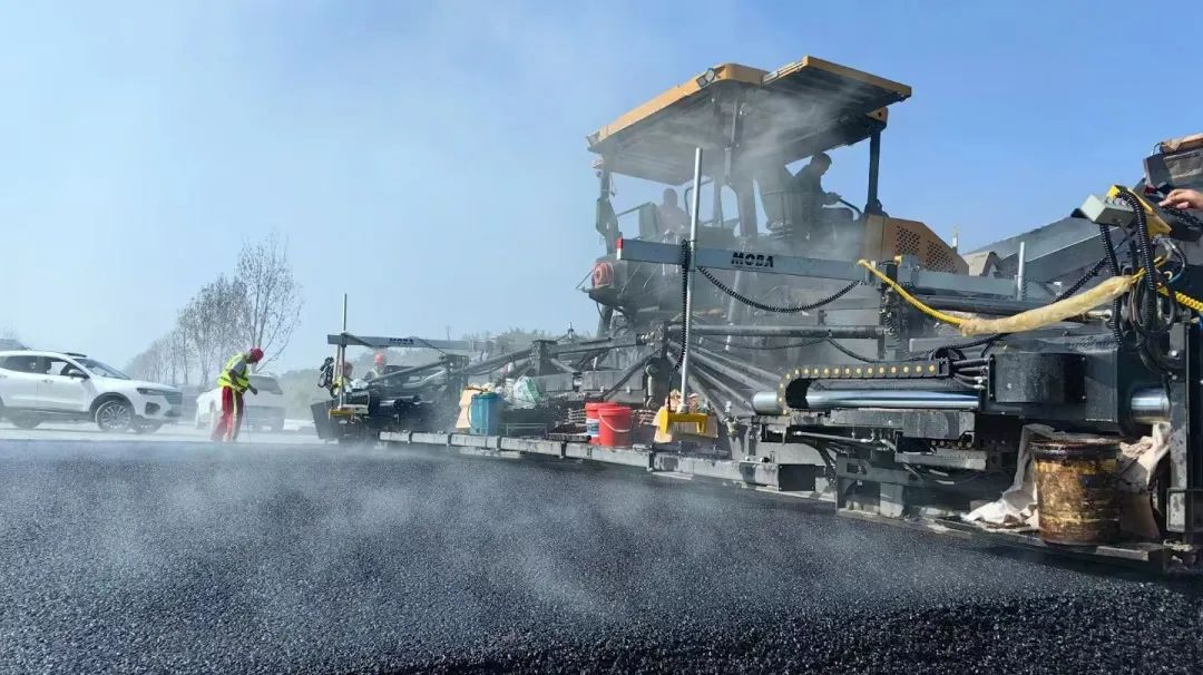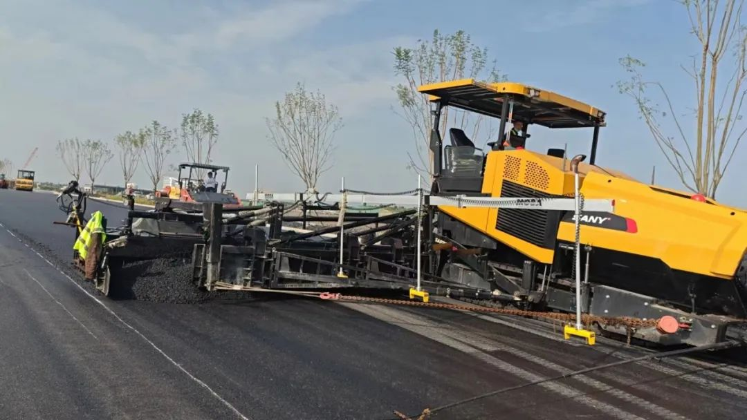 根据项目规划及要求,路面摊铺宽度为14米到16米不等,好体育投注网站施工项目组采用拼装13米熨平板加两端各2米端伸缩的装机方案,可实现13-17米摊铺宽度一键无级调整,适应项目工况要求,圆满完成施工任务。