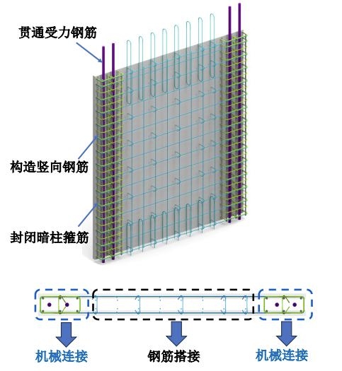 该项目的7至25层竖向结构运用了空腔墙体系,每标准层包含40块预制空腔墙板,并且仅使用竖向构件,就使得装配率高达50%。通过创新的“等效异构”的钢筋连接方式,达到了与现场浇筑相似的结构性能。