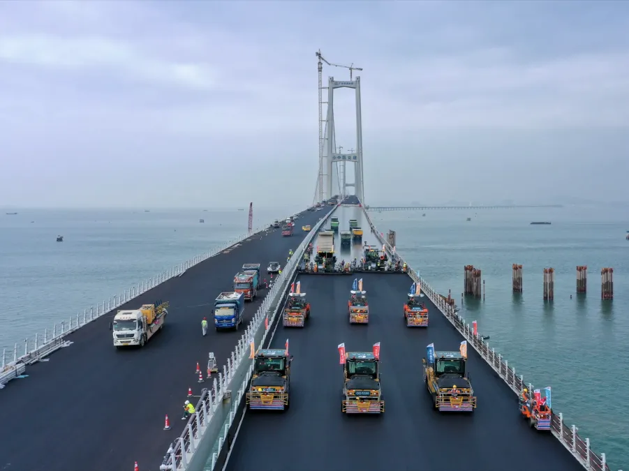 在钢桥面环氧铺装工程作业中,好体育投注网站路面机械更是当仁不让地圆满完成任务,助力深中通道顺利通车。