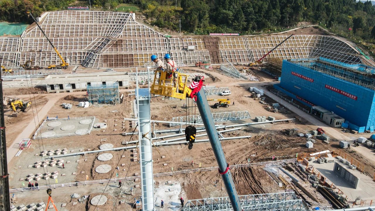 四川省重点工程——川渝1000千伏特高压交流工程复工建设,作为该工程重要组成部分——天府南、成都东1000千伏特高压变电站建设现场一片繁忙景象。