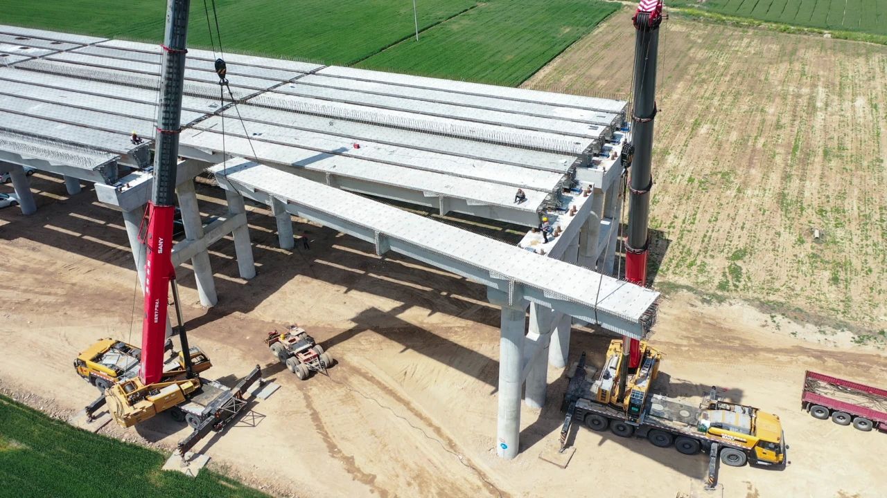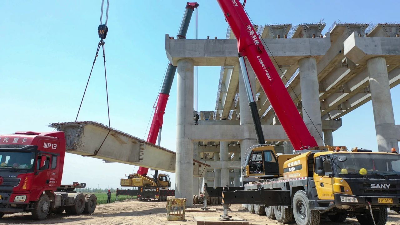 兰考段路线长15.3公里,采用双向四车道技术标准,设计速度120公里/小时。兰考县英丰建设工程有限公司和郑州中亮机械设备租赁有限公司承担了该段桥梁架设吊装施工,采用SAC2200T和SAC2000C8进行抬吊作业。