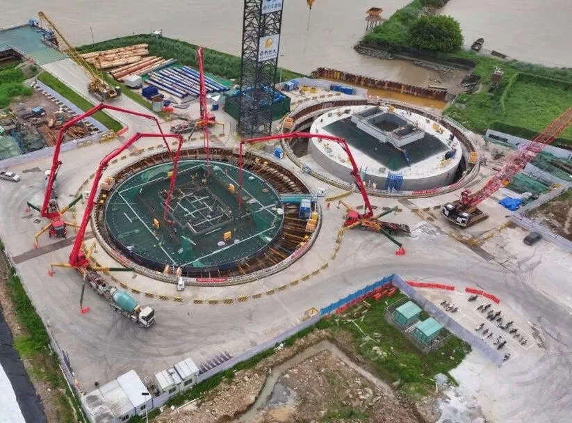 狮子洋大桥是狮子洋通道的关键控制性工程,在珠江两岸共设置了东、西两座巨型索塔。其中,东索塔承台为两个直径40米、高9米的圆形,承台及系梁混凝土总方量约2.5万方,全部采用C45高强度混凝土,施工难度大。
