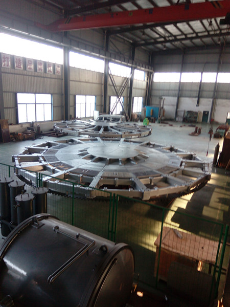 近期,我公司與與遼寧營口盛?;び邢薰竞炗喴惶兹詣佣渴綀A盤澆鑄機(jī)制作安裝合同。該圓盤澆鑄機(jī)為16模雙圓盤結(jié)構(gòu),采用鉤取方式取板。目前,該設(shè)備已經(jīng)在公司內(nèi)部完成加工和組裝工作。